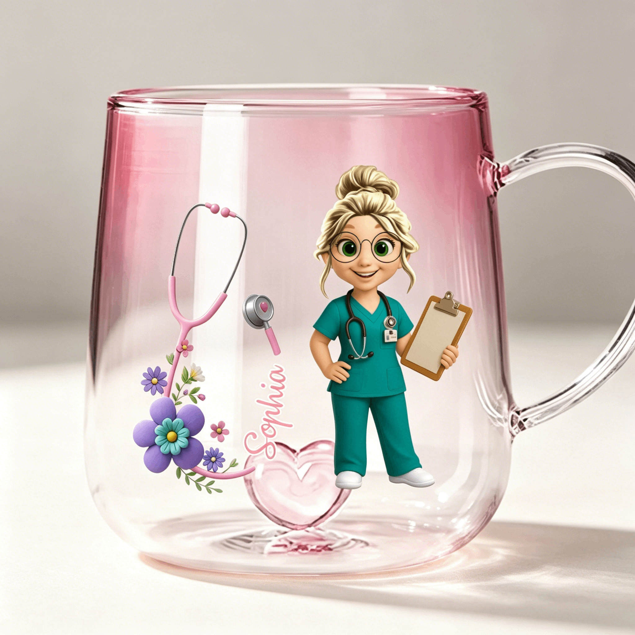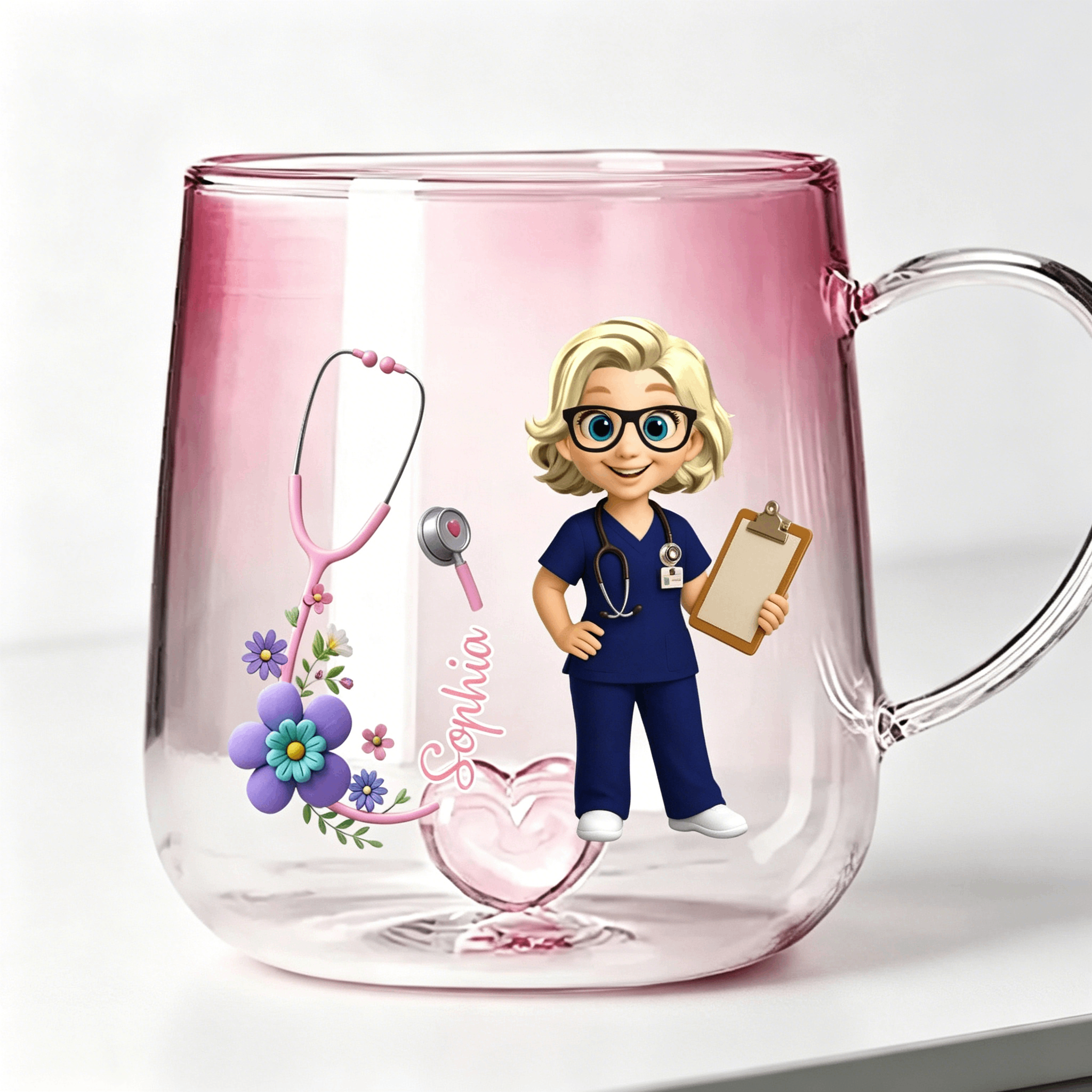 Personalized glass mug with color gradient for nursing heroes – personal, loving, unique
