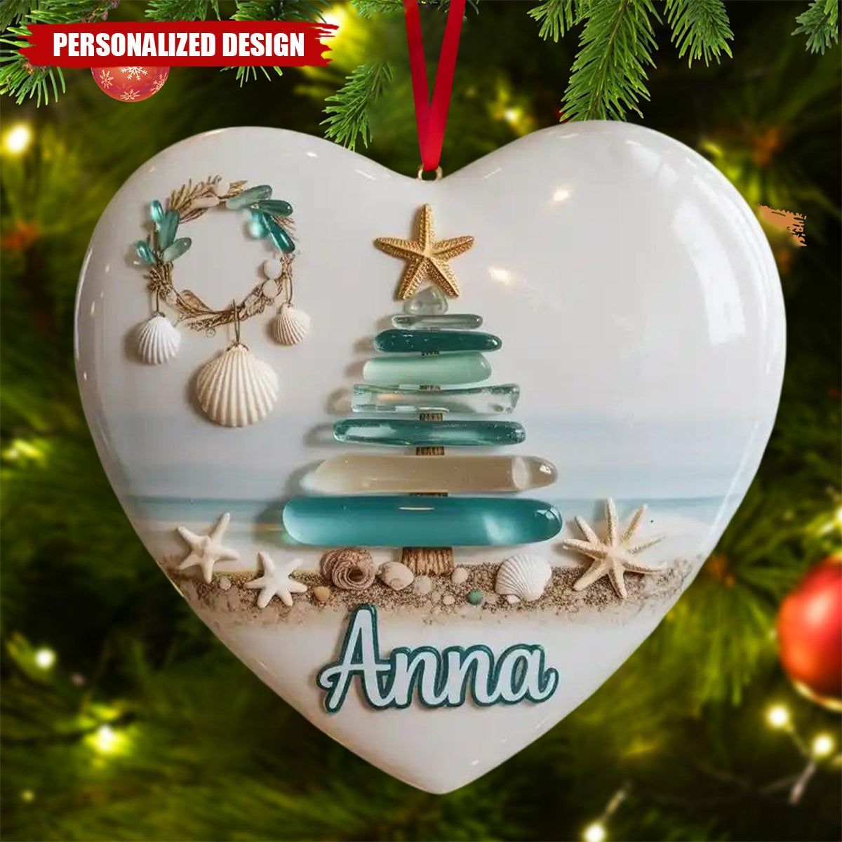 Personalized Coastal Sea Glass Ceramic Christmas Tree Ornaments