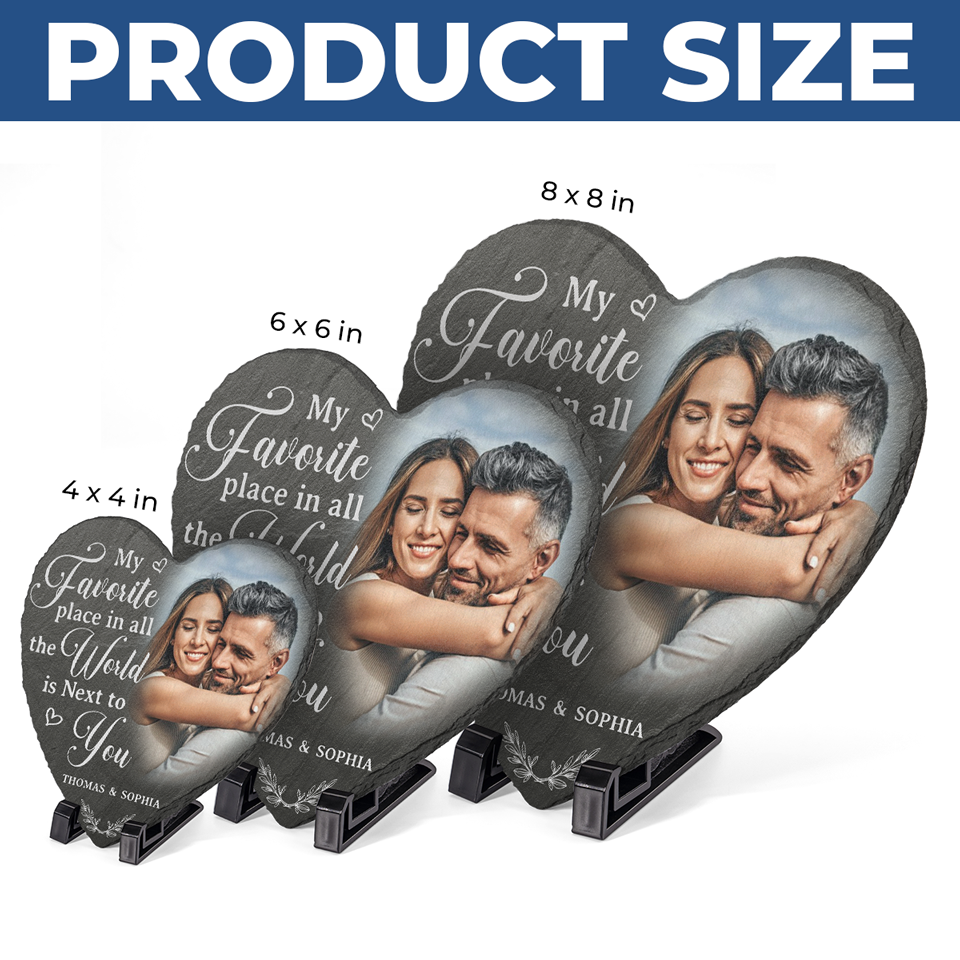 Custom Photo My Favorite Place In All The World Is Next To You - Couple Personalized Custom Heart Shaped Stone With Stand - Gift For Husband Wife, Anniversary