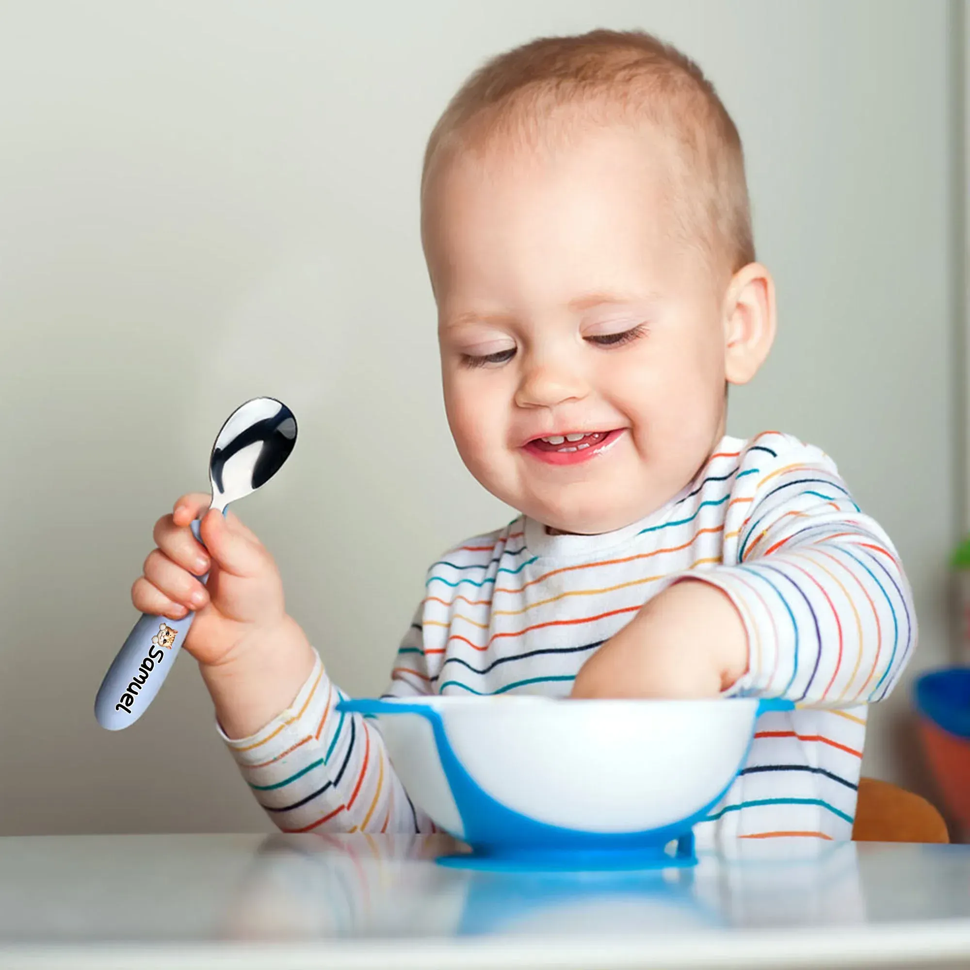 Personalised Cute Animal Food-Grade Stainless Steel Name Spoon Fork 2 Pcs Cutlery Set with Case Birthday Back to School Gift for Toddler Kid