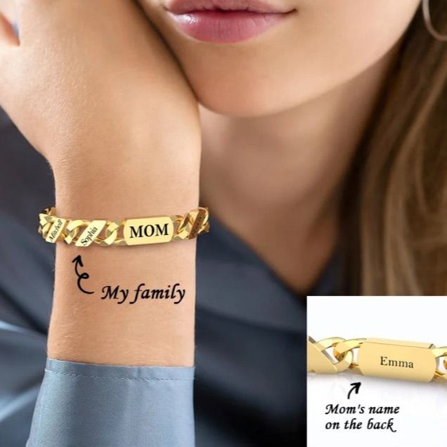 Personalized Fashion Name Bar Bracelet—A Gift for Dad and Mom-Universal size - chain length is freely adjustable