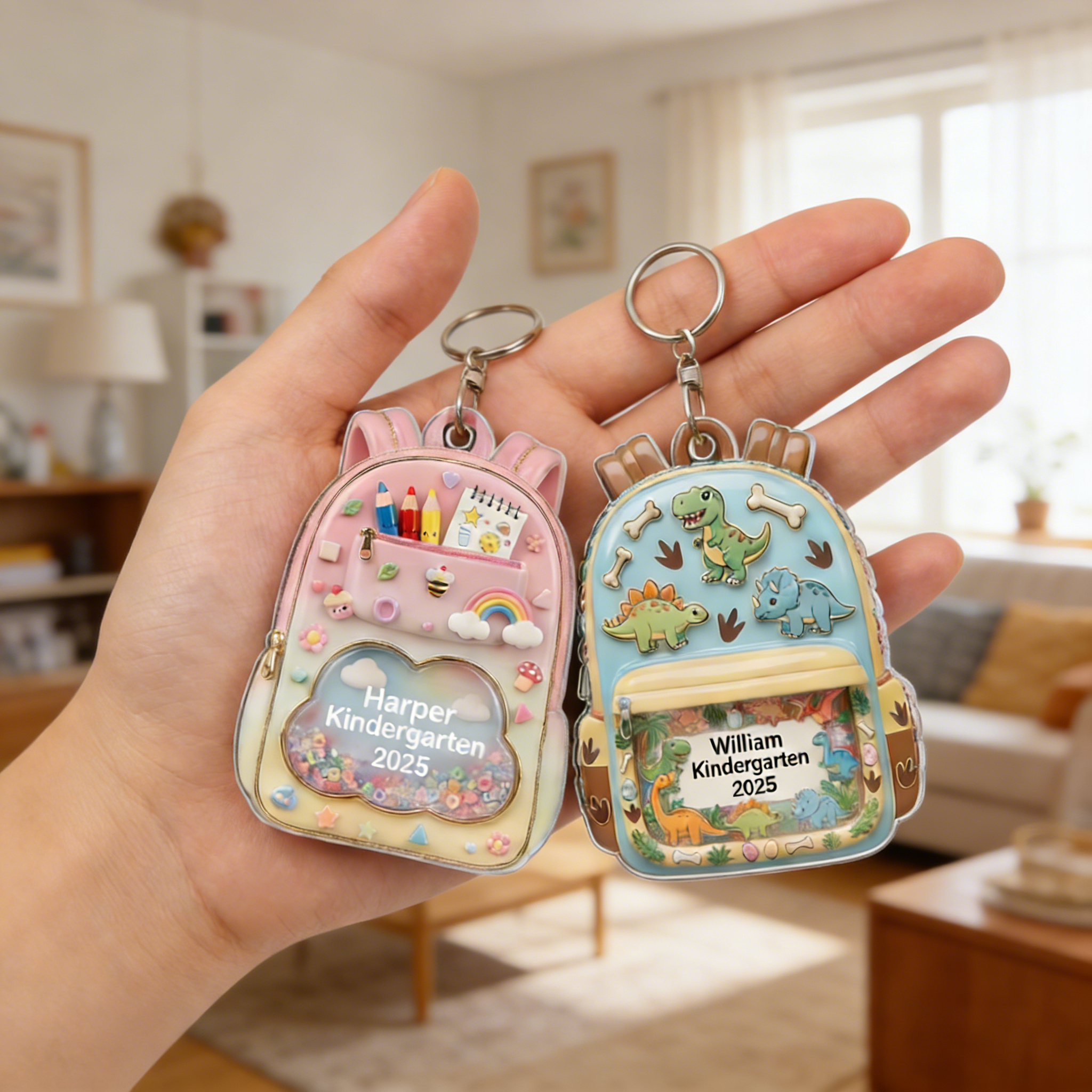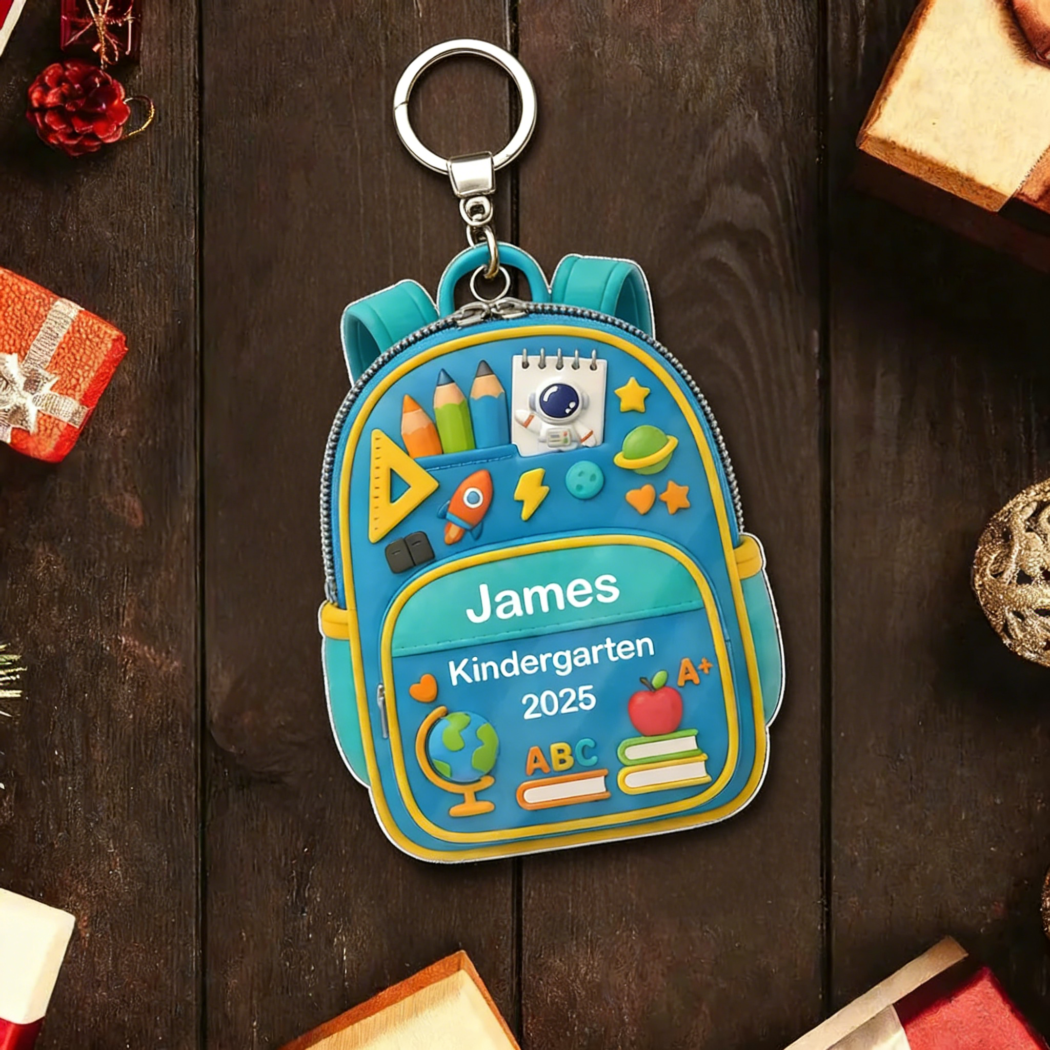 Personalized Acrylic Children's Backpack Keychain — Adorable School-Themed Gift