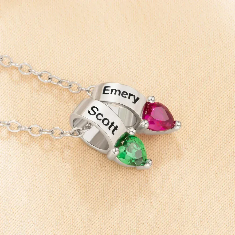 Personalized, heart-shaped family birthstone necklace, can be engraved with 1-5 names, an exquisite piece of jewelry.